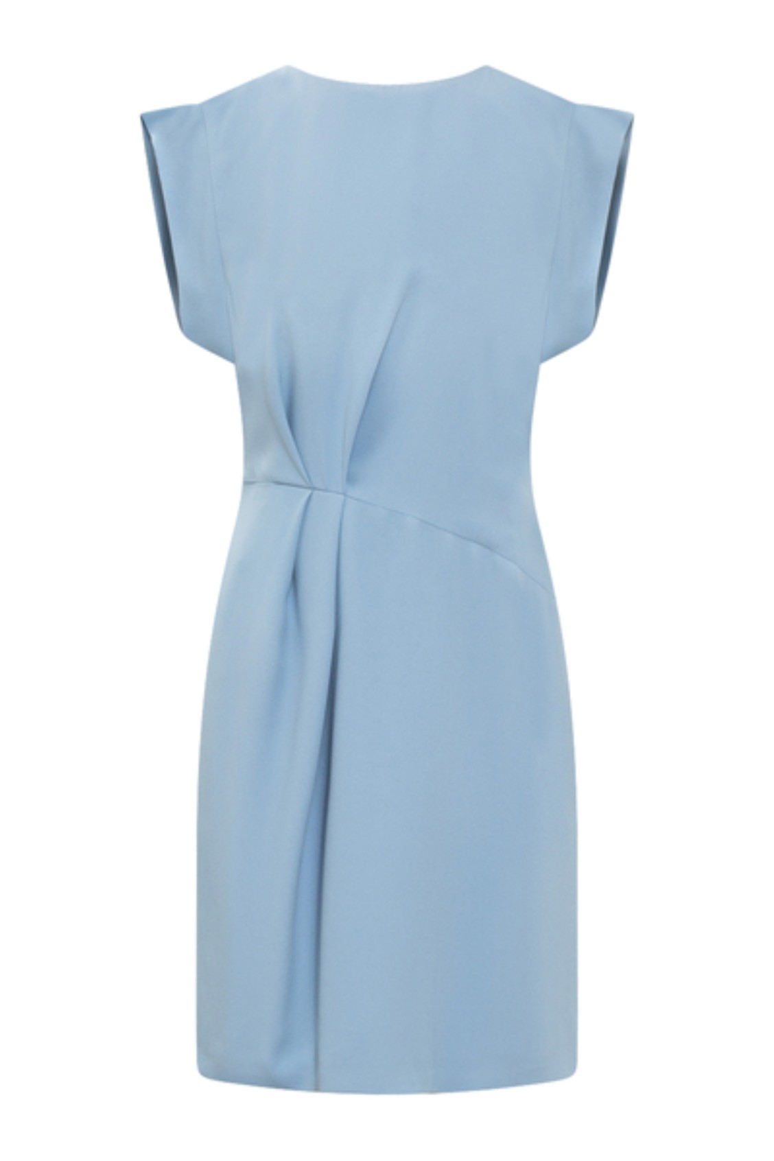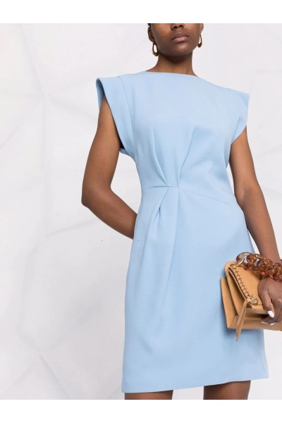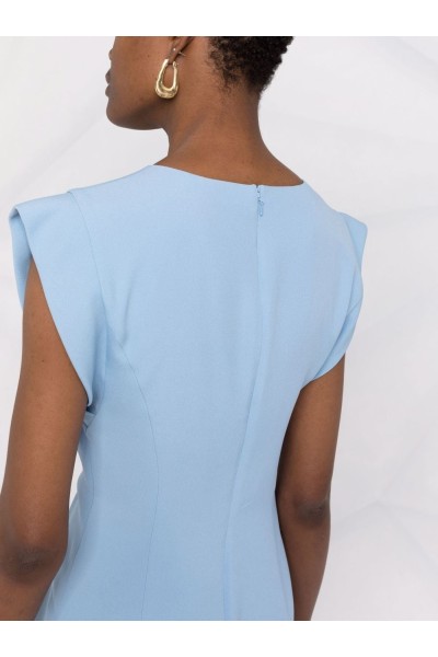 abito azzurro in cady , fluido ed elegante , con lieve arricciatura sul davanti